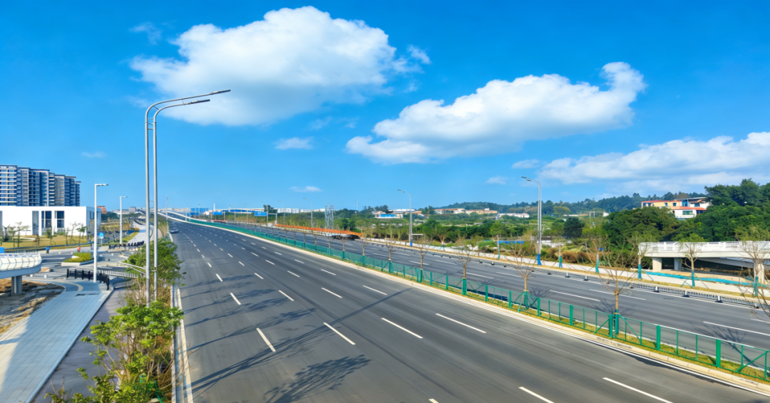 “十四五”期间,花都围绕“北部增长极”定位,以“七纵八横”主干路网撑起增长极脊梁,新花大道(花都大道-商业大道)是花都区“七纵八横”主干路网中的关键一纵——与G106国道、莲山路路等既有主干道科学衔接、优势互补,与三东大道、平石路、商业大道进行东西畅联,显著缓解了区域交通压力,形成了高效转换的骨干路网十字轴,为打造“北部增长极”提供了坚实的交通支撑。