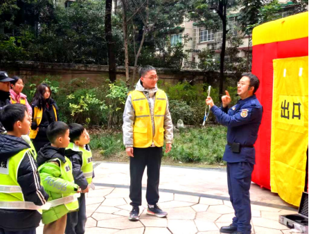 2026年1月24日上午,由四川省成都市金牛区茶店子街道锦城社区关工委主办的“防范隐患 安全共治”消防演练活动在辖区城市博客阳光里小区活动广场开展。本次活动吸引了社区内众多青少年儿童和“小小志愿者”参加。活动现场设置了丰富的体验与教学环节。在专业讲解员的指导下,大家首先系统学习了高层建筑火灾特点、应急疏散要领,以及针对不同人群(包括行动不便者)的疏散辅助方法。随后,依次进入“烟道逃生体验屋”,在模拟的黑暗、浓烟环境中,亲身实践低姿、捂口鼻、沿墙疏散等逃生技巧,克服恐慌心理,掌握正确逃生路径选择。