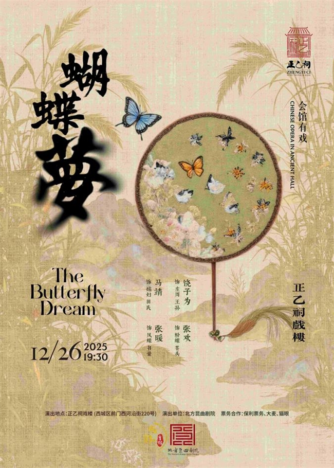 12月26日,正乙祠戏楼邀您共入一场兼具美学与哲思的《蝴蝶梦》,在昆曲雅韵中探寻存在的真谛。